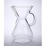 Known as a pristine coffeemaker, Chemex employs all of the chemically correct methods for brewing. Its hourglass shaped flask is made entirely of glass, a chemically inert material that does not absorb odors or chemical residues. The Chemex has no moving parts and will work forever, unless it is dropped or in some other way demolished. Chemex filters are made of the highest quality filter paper. Please note: All of the coffeemakers are measured using 5 oz. as 1 cup. This Chemex coffeemaker has a sturdy glass handle. The Chemex Coffeemaker was invented over 60 years ago by German chemist and artist, Dr. Peter Schlumbohm. The simplicity of the Chemex coffeemaker's elegant hourglass shape has been honored for its design by many prestigious museums, including the Smithsonian, the Museum of Modern Art, and the Philadelphia Museum of Art. Its functional capabilities are also world-renowned. The Chemex uses a thick paper filter that removes many of the impurities that electric makers allow to pass through, making the coffee much more pure and flavorful. It also brews directly into the serving container for simple decanting and cleaning. Read more