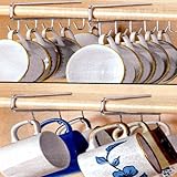 Our under shelf chrome steel cup holder neatly organizes cups saving you precious cupboard, countertop and cabinet space. Just slide onto any existing shelf: no tools required. Holds up to 12 cups. Made of chrome finish steel, each measures: 10 7/8" x 7" x 2 3/8" Read more