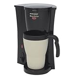 Black & Decker Brew 'N Go coffeemaker in black. Includes a 15.5 oz. Thermal Mug, lighted on/off switch, auto off, permanent filter and Brew-Thru carafe lid. Read more